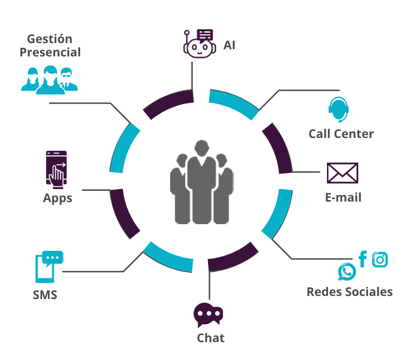 Integramos la gestión de nuestros Ejecutivos con herramientas omnicanales, de esta manera generamos un ecosistema al usuario final que garantiza agilidad por medio de herramientas tecnológicas sin perder la interacción humana y el trato personalizado.